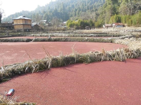 surrounded by rice fields and is nestled between a cluster of beautiful pine trees.
